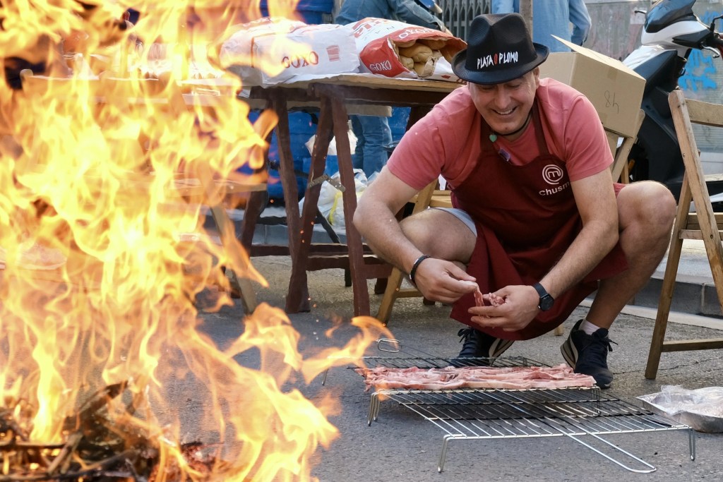 «La mesa es para cuatro, pero a medida que van pasando las horas, se acerca más gente y ¡a comer chuletillas, que es lo más sano que hay!.